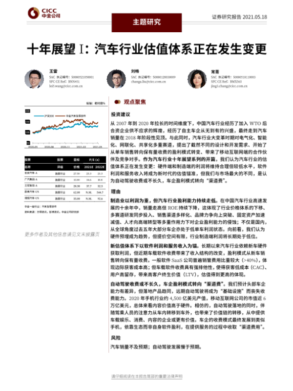 【中金公司】【20210518】十年展望I:汽车行业估值体系正在发生变更-23页 行业研究