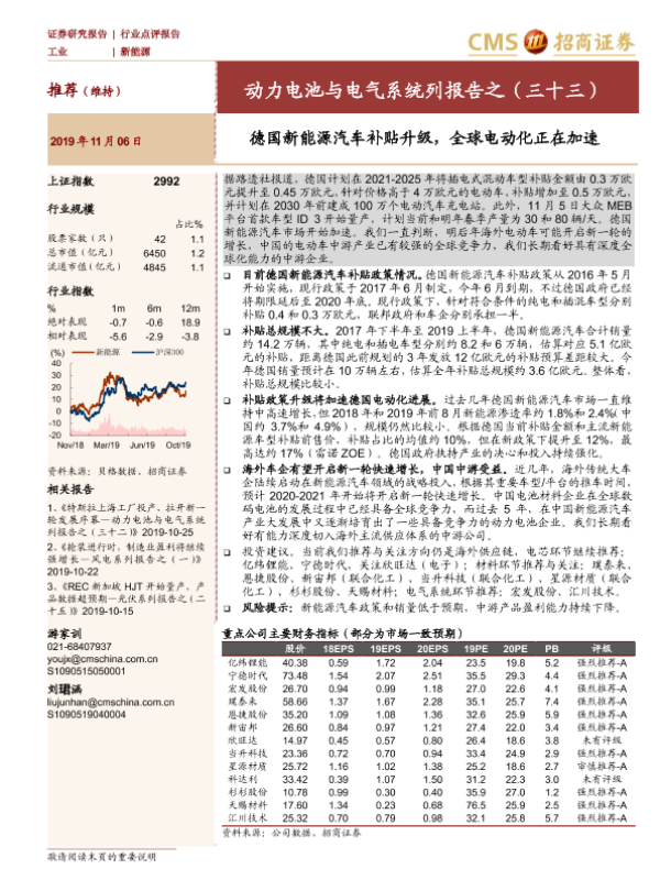 【海通证券】【20191106】动力电池与电气系统列报告之(三十三):德国新能源汽车补贴升级,全球电动化正在加速-5页 行业研究
