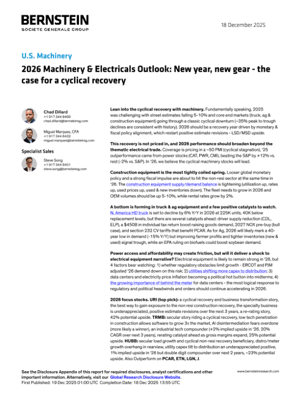 【Bernstein Institutional Services LLC】【202603】美国2026年机械与电气设备展望-135页 行业研究
