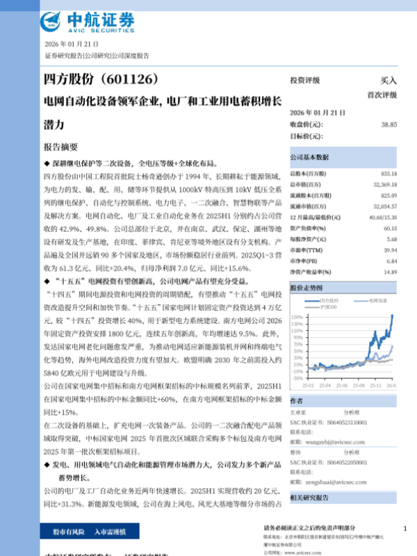 【中航证券】【202601】电网自动化设备领军企业,电厂和工业用电蓄积增长潜力-5页 证券期货研究报告