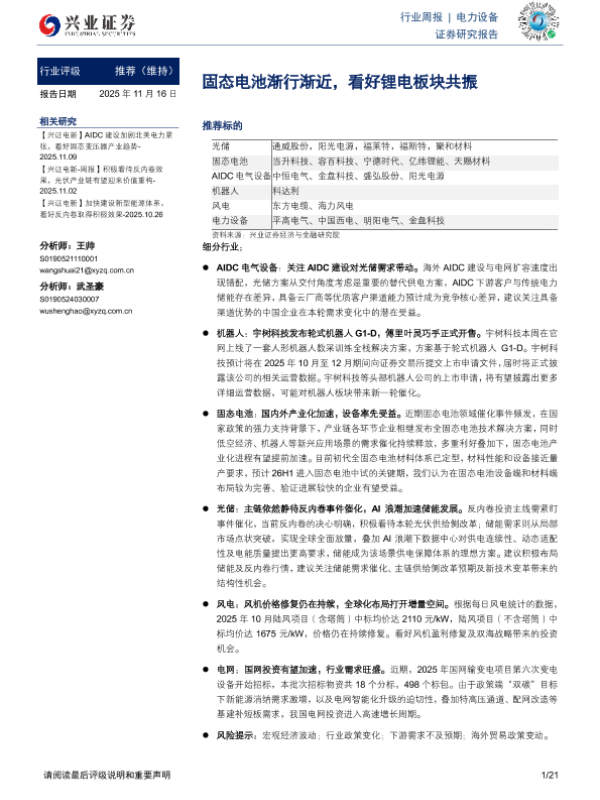 【兴业证券】【202511】固态电池渐行渐近,看好锂电板块共振-21页 证券期货研究报告