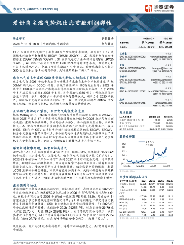 【华泰证券】【202511】看好自主燃气轮机出海贡献利润弹性-11页 证券期货研究报告