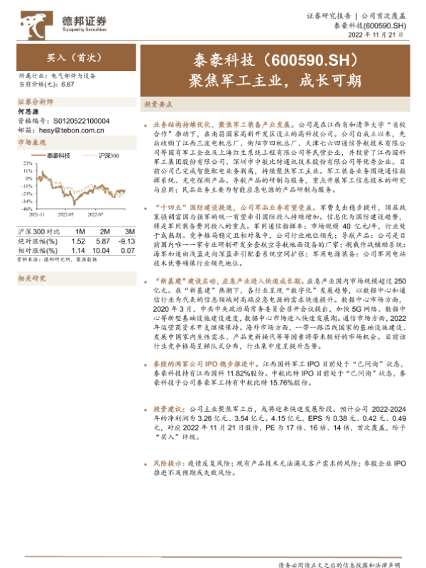 【德邦证券】【20221121】泰豪科技:聚焦军工主业,成长可期-26页 行业研究