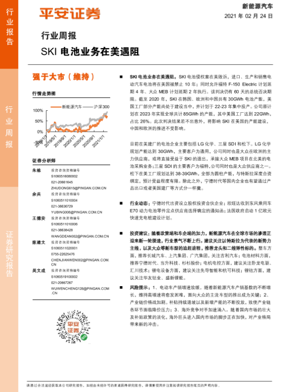 【平安证券】【20210224】20210224-平安证券-新能源汽车行业周报:SKI电池业务在美遇阻-9页 行业研究