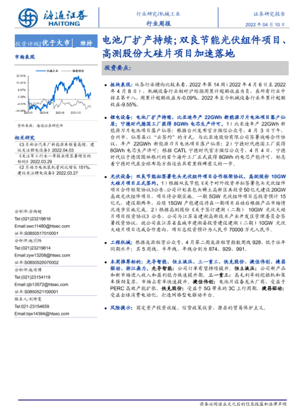【海通证券】【20220410】20220410-海通证券-机械工业行业周报:电池厂扩产持续;双良节能光伏组件项目、高测股份大硅片项目加速落地-9页 行业研究