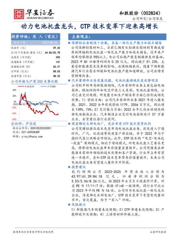 【华安证券】【20230605】动力电池托盘龙头,CTP技术变革下迎来高增长-30页 行业研究