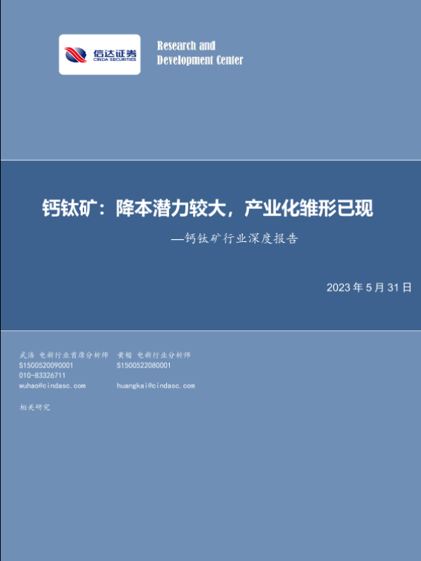 【信达证券】【20230531】钙钛矿:降本潜力较大,产业化雏形已现-25页 行业研究