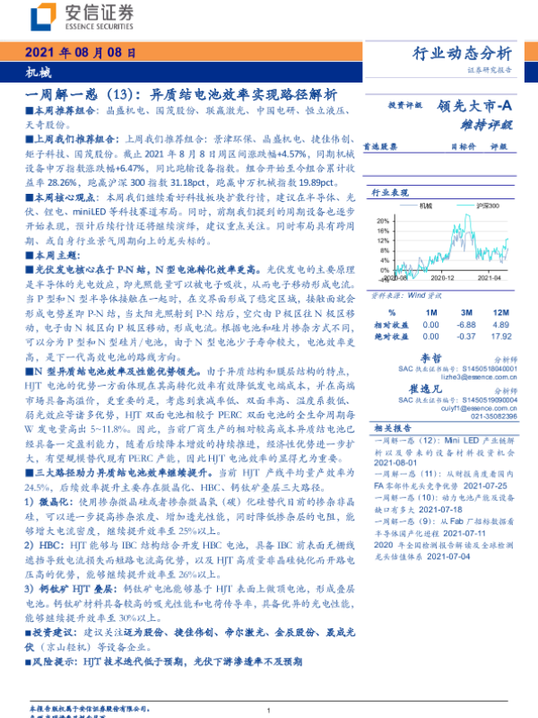 【安信证券】【20210808】机械一周解一惑(13):异质结电池效率实现路径解析-9页 行业研究