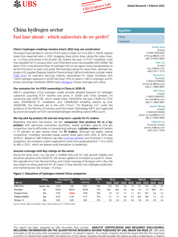 【瑞银证券亚洲有限公司】【20220308】瑞银-中国化学制品行业-氢行业:前方的快车道之我们更喜欢哪个界别?-37页 行业研究