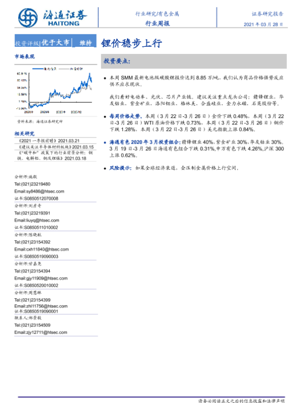 【海通证券】【20210328】20210328-海通证券-有色金属行业周报:锂价稳步上行-5页 行业研究