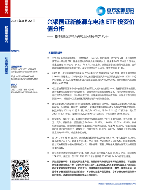 【申万宏源】【20210822】指数基金产品研究系列报告之八十:兴银国证新能源车电池ETF投资价值分析-21页 行业研究