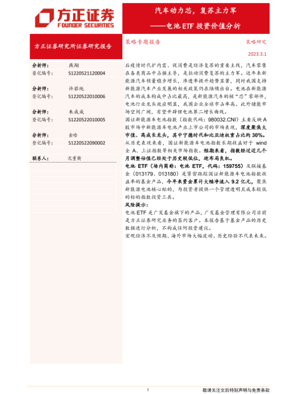 【方正证券】【20230301】电池ETF投资价值分析:汽车动力芯,复苏主力军-15页 行业研究
