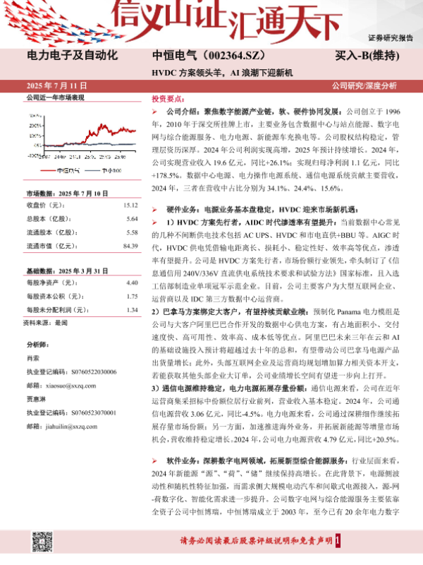 【山西证券】【20250711】HVDC方案领头羊,AI浪潮下迎新机-24页 公司研究