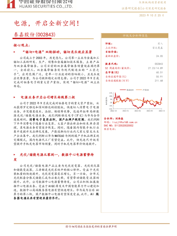 【华西证券】【20231025】20231025-华西证券-泰嘉股份-002843.SZ-电源,开启全新空间!-31页 行业研究