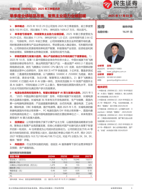 【民生证券】【202511】单季度业绩明显改善,聚焦主业助力业绩回暖-3页 证券期货研究报告