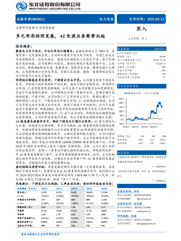 【东北证券】【20250212】麦格米特(002851)多元布局协同发展,AI电源业务乘势而起-31页 行业研究