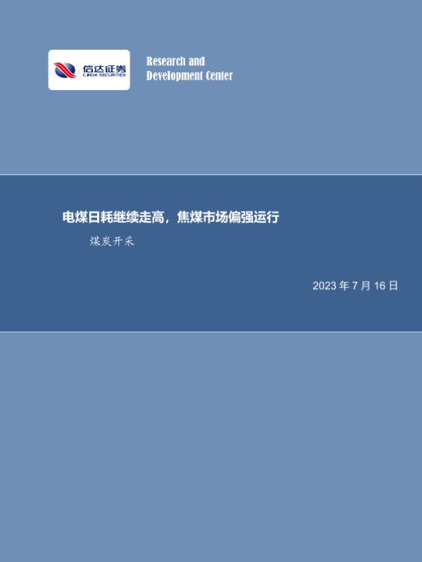 【信达证券】【20230716】20230716-信达证券-煤炭开采行业周报:电煤日耗继续走高,焦煤市场偏强运行-27页 行业研究