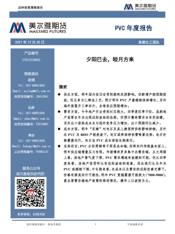 【美尔雅期货】【20211220】PVC年度报告:夕阳已去,皎月方来-22页 行业研究