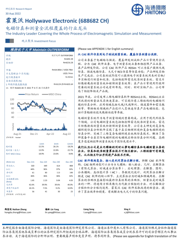 【海通国际】【20220830】霍莱沃-688682.SH-电磁仿真和测量全流程覆盖的行业龙头-35页 行业研究
