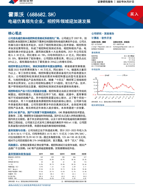 【国信证券】【20220407】国信证券-霍莱沃-688682.SH-电磁仿真领先企业,相控阵领域迎加速发展-36页 行业研究