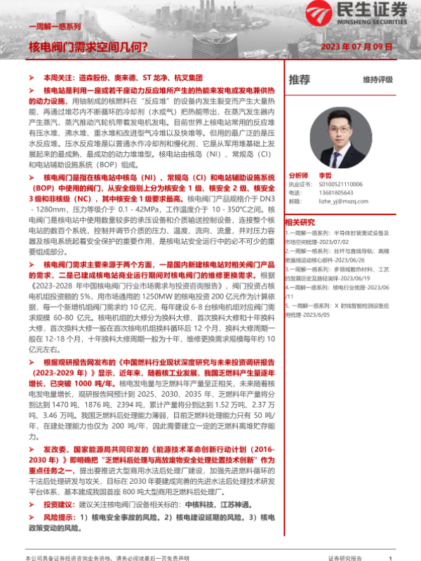 【民生证券】【20230709】机械一周解一惑系列:核电阀门需求空间几何?-16页 行业研究