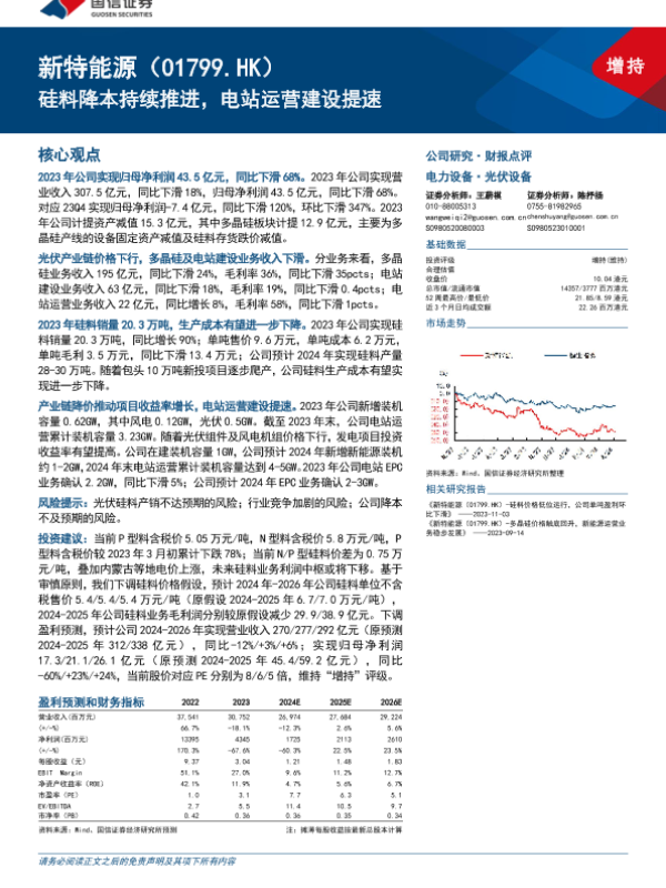 【国信证券】【20240410】新特能源(01799.HK)硅料降本持续推进,电站运营建设提速-10页 行业研究