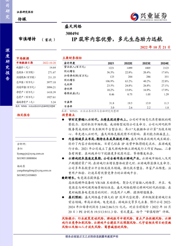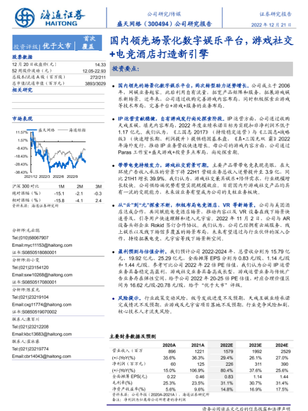 【海通证券】【20221221】国内领先场景化数字娱乐平台,游戏社交+电竞酒店打造新引擎-23页 行业研究