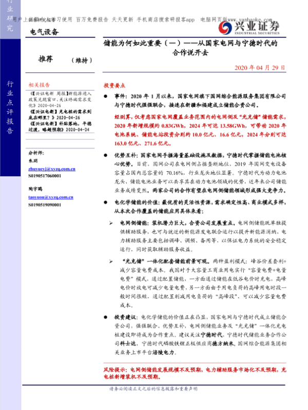 【兴业证券】【20200429】储能为何如此重要(—)——从国家电网与宁德时代合作说开去-27页 行业研究