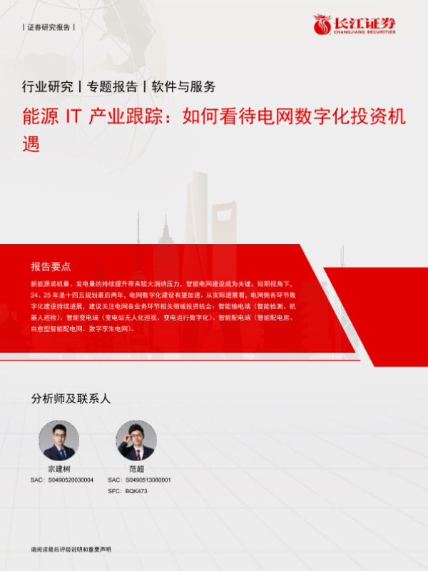 【长江证券】【20240520】软件与服务行业能源IT产业跟踪:如何看待电网数字化投资机遇-13页 行业研究