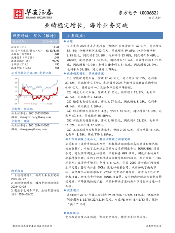 【华安证券】【20250830】东方电子-业绩稳定增长,海外业务突破-4页 证券期货研究报告