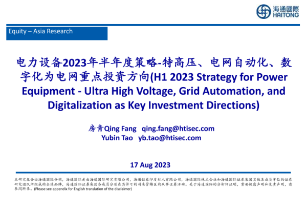 【海通国际】【20230817】电力设备2023年半年度策略:特高压、电网自动化、数字化为电网重点投资方向-38页 行业研究