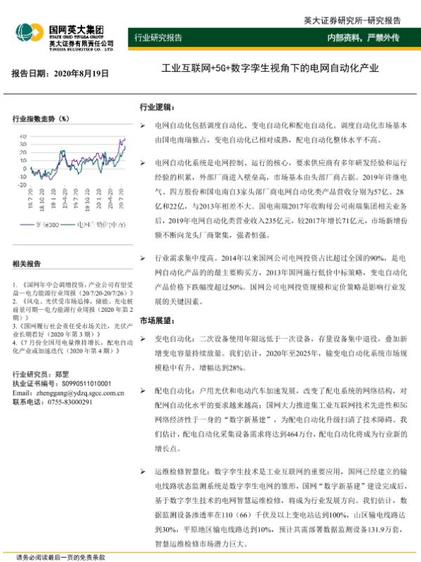 【英大证券】【20200819】工业互联网+5G+数字孪生视角下的电网自动化产业-21页 行业研究