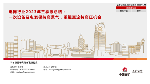 【五矿证券】【20231115】电网行业2023年三季报总结:一次设备及电表保持高景气,重视直流特高压机会-18页 行业研究