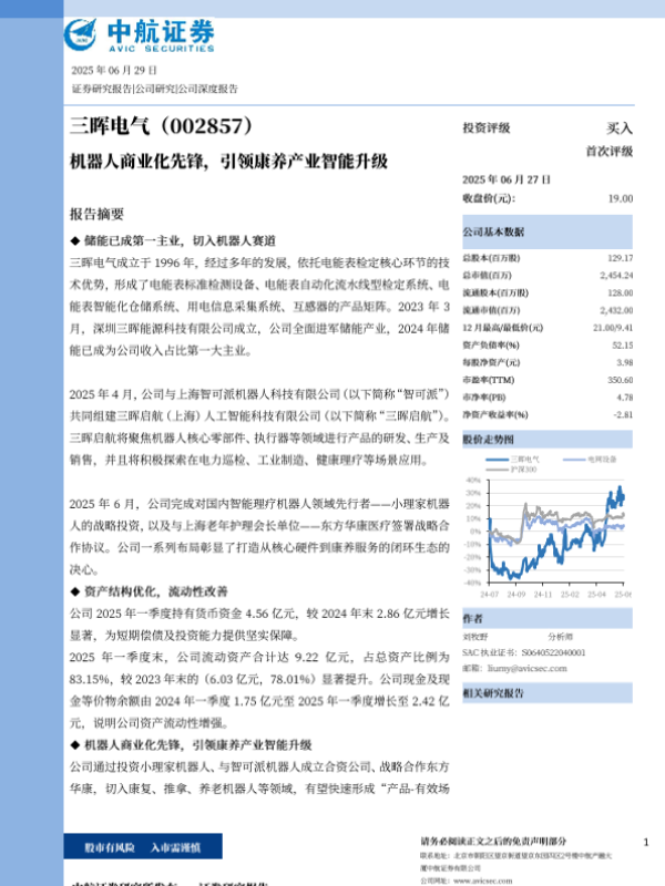 【中航证券】【20250629】三晖电气-机器人商业化先锋,引领康养产业智能升级-12页 公司研究