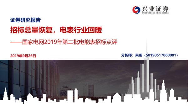 【兴业证券】【20190926】国家电网2019年第二批电能表招标点评:招标总量恢复,电表行业回暖-16页 行业研究