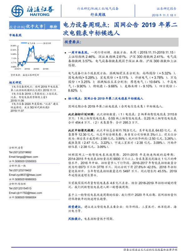 【海通证券】【20191118】电力设备周观点:国网公告2019年第二次电能表中标候选人-7页 行业研究