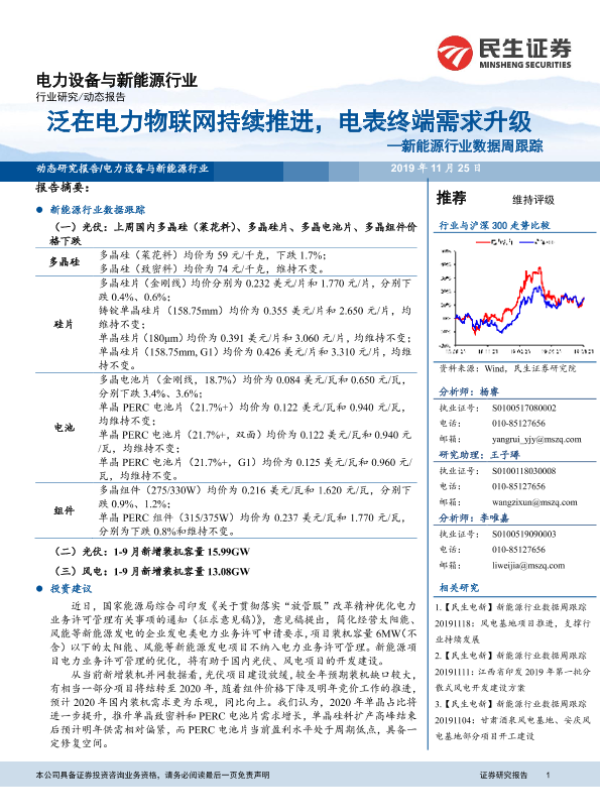 【民生证券】【20191125】20191125-民生证券-新能源行业数据周跟踪:泛在电力物联网持续推进,电表终端需求升级-10页 行业研究