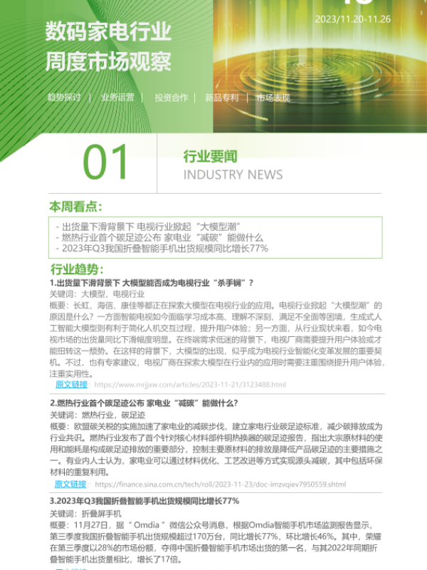 【艾瑞咨询】【20231126】2023年第48周:数码家电行业周度市场观察-4页 行业研究