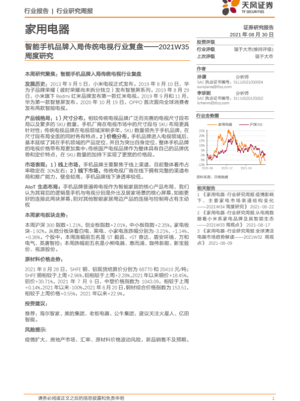 【天风证券】【20210830】家用电器2021W35周度研究:智能手机品牌入局传统电视行业复盘-18页 行业研究