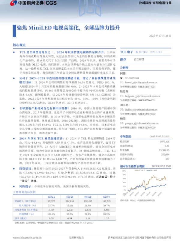 【银河证券】【202508】MiniLED TV与大屏化持续带动全球定位提升-12页 证券期货研究报告
