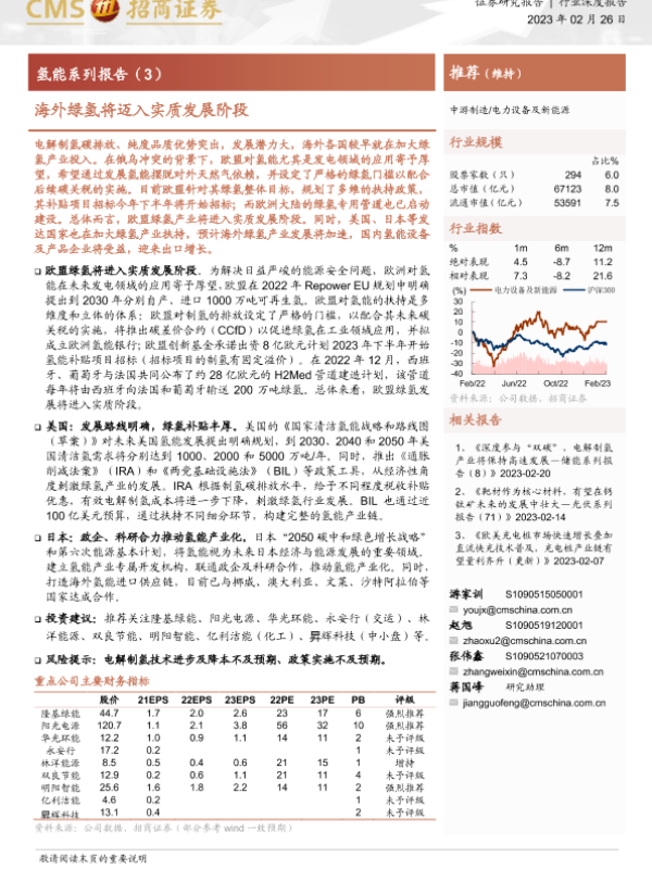 【海通证券】【20230226】电力设备及新能源氢能系列报告(3):海外绿氢将迈入实质发展阶段-15页 行业研究