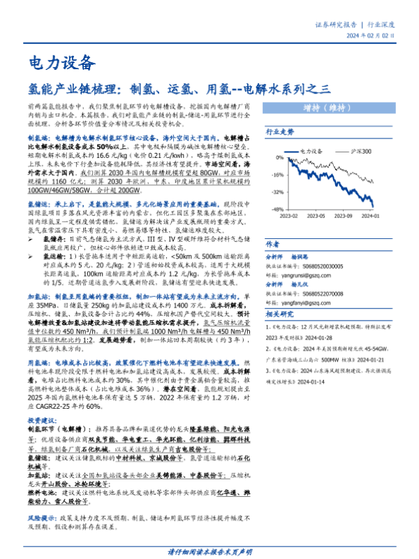 【国盛证券】【20240202】电解水系列之三:氢能产业链梳理:制氢、运氢、用氢-33页 行业研究