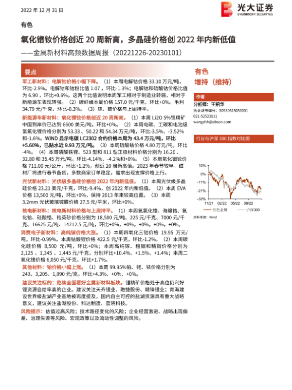 【光大证券】【20221231】20221231-光大证券-金属新材料高频数据周报:氧化镨钕价格创近20周新高,多晶硅价格创2022年内新低值-26页 行业研究