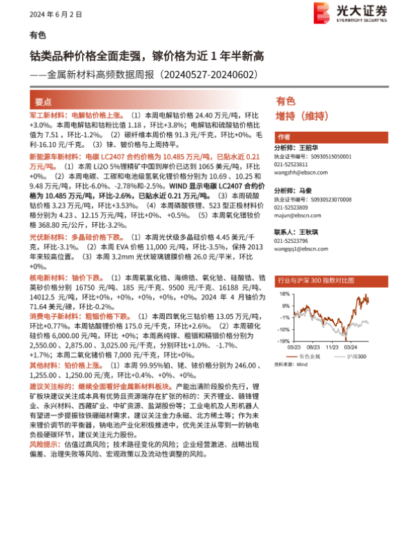【光大证券】【20240602】20240602-光大证券-金属新材料高频数据周报:钴类品种价格全面走强,镓价格为近1年半新高-21页 行业研究