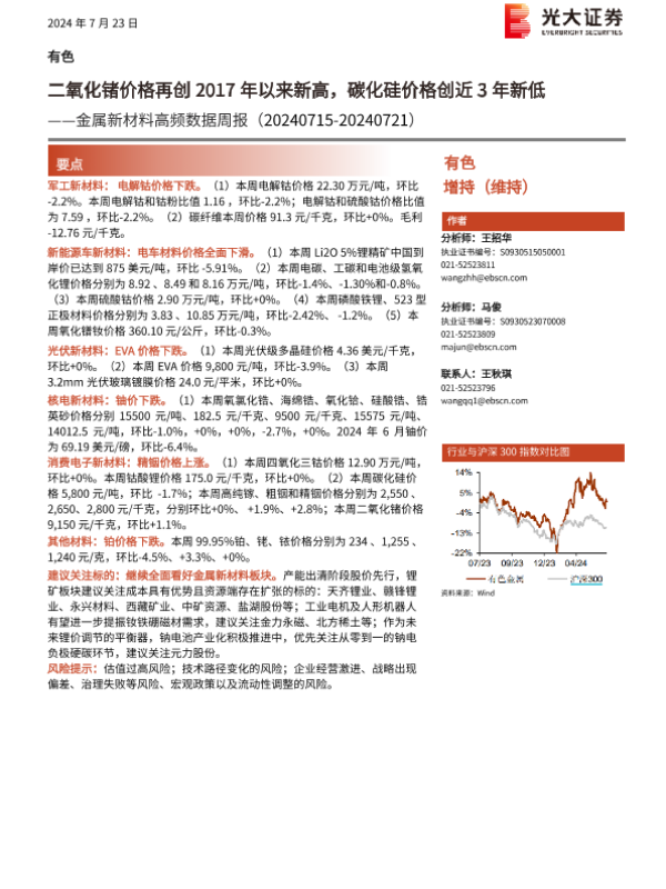 【光大证券】【20240723】金属新材料高频数据周报:二氧化锗价格再创2017年以来新高,碳化硅价格创近3年新低-22页 行业研究