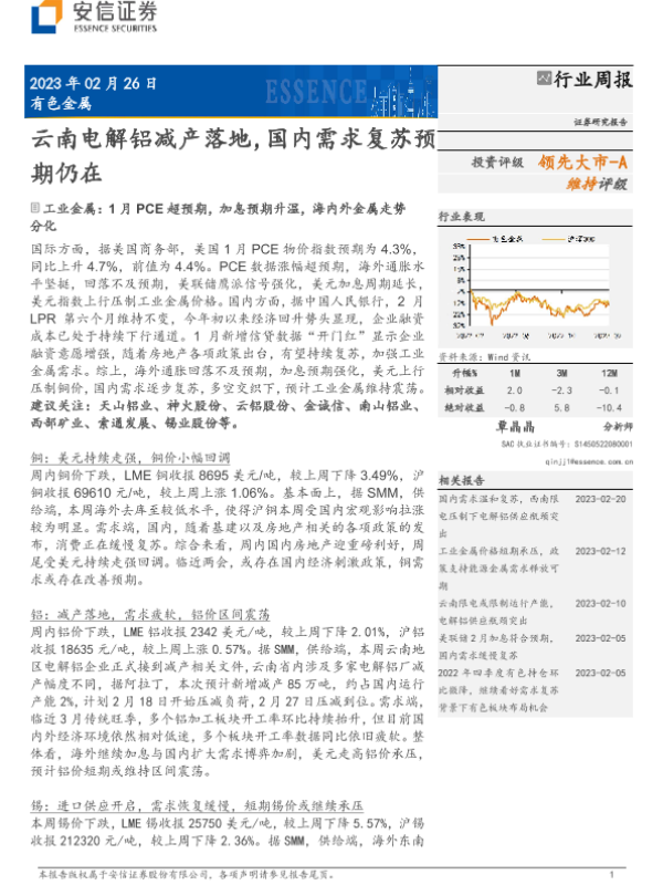 【安信证券】【20230226】有色金属行业周报:云南电解铝减产落地,国内需求复苏预期仍在-19页 行业研究