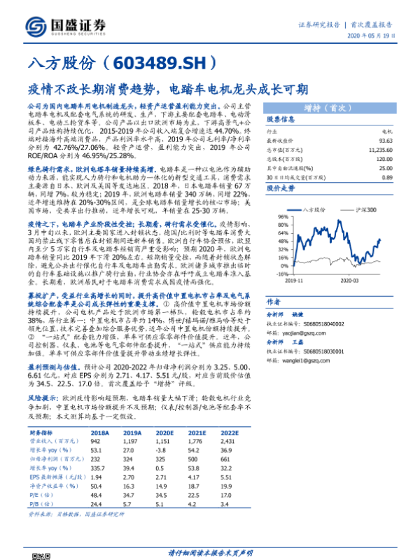 【国盛证券】【20200519】疫情不改长期消费趋势,电踏车电机龙头成长可期-25页 行业研究