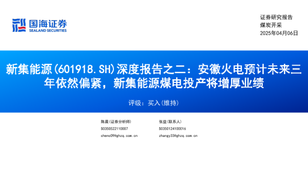 【国海证券】【20250406】新集能源(601918)深度报告之二:安徽火电预计未来三年依然偏紧,新集能源煤电投产将增厚业绩-30页 证券期货研究报告