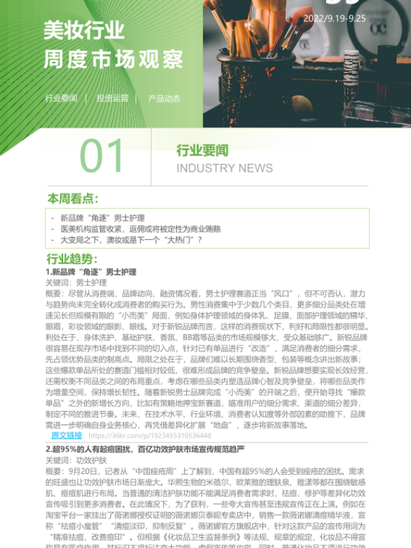 【艾瑞咨询】【202209】2022年第39周:美妆行业周度市场观察-8页 行业研究