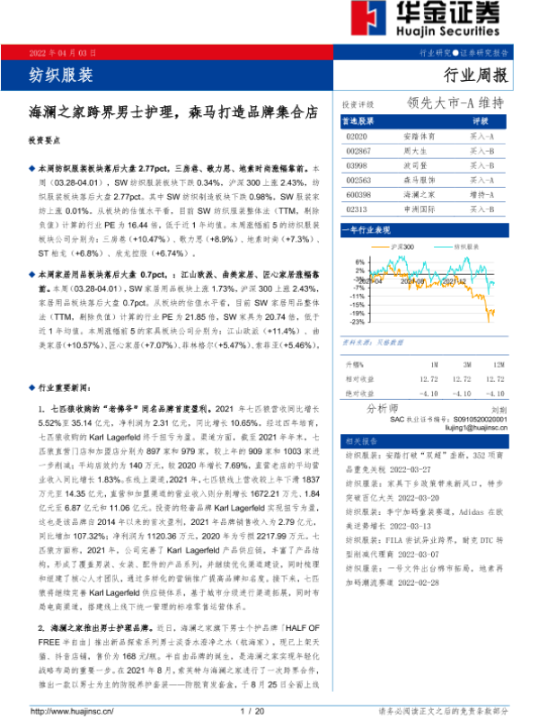 【华金证券】【20220403】纺织服装:海澜之家跨界男士护理,森马打造品牌集合店-20页 行业研究